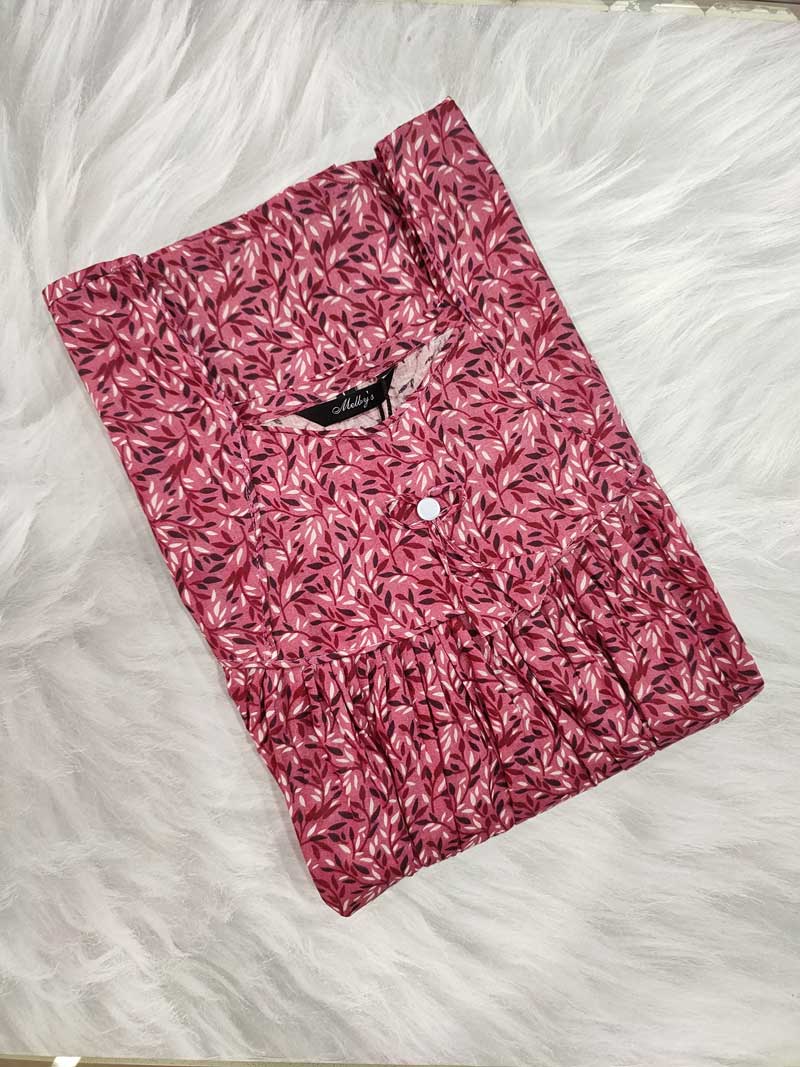 Traditional cotton nighty, Thali detailing on neck, 55 Inches Length – Light pink colour