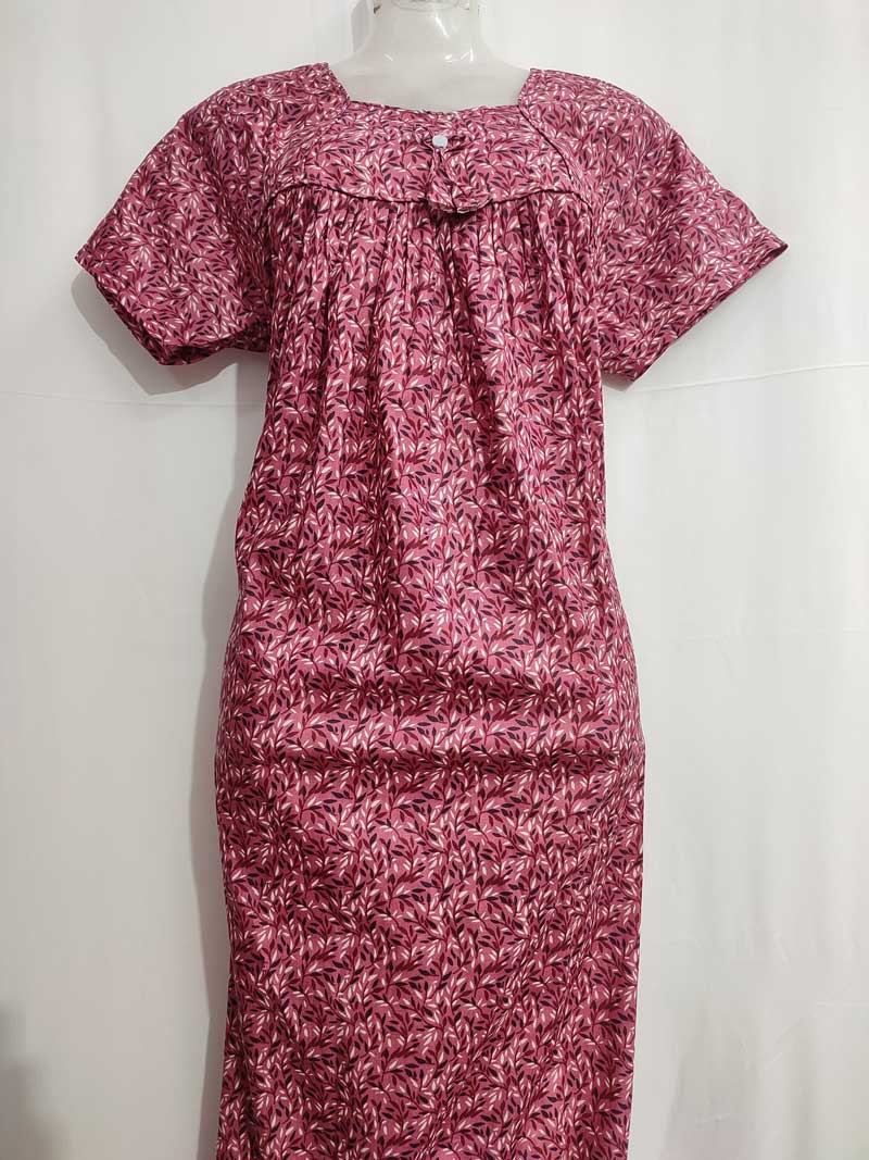 Comfortable Cambric Cotton Nighty With Buttons -55 Inches Long