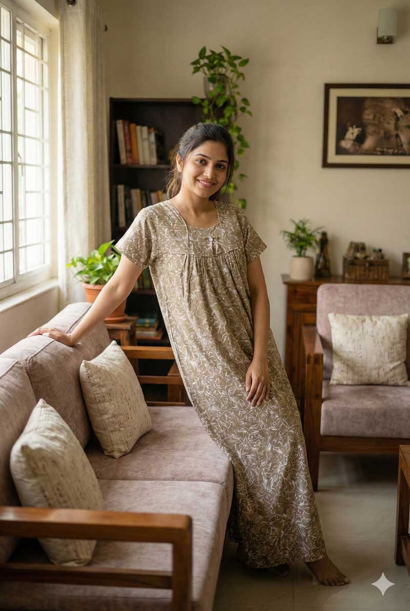 Comfortable Traditional Cotton Nighty, 57 Inches Long