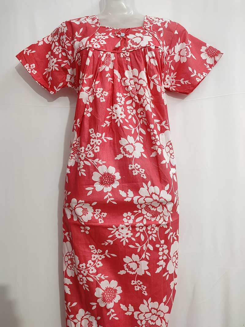 Premium Cambric Cotton Nighty With Long Sleeves – Buttons Type – Maroon