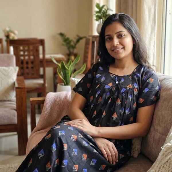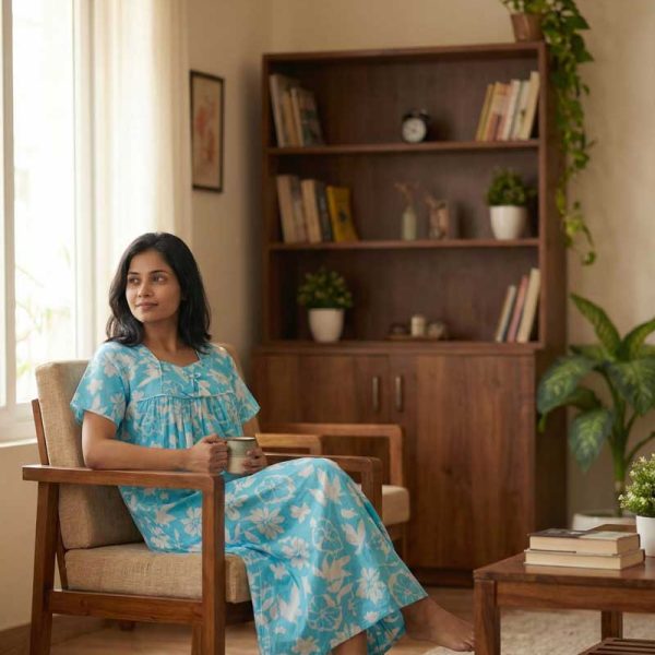 Comfortable Churidar Model Cotton Nighty – 55 Inches Long – Cream