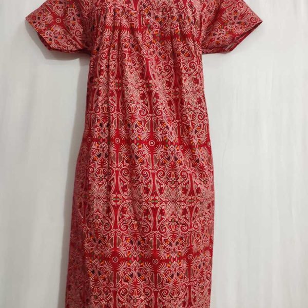 Traditional cotton nighty, 55 Inches Long -Maroon