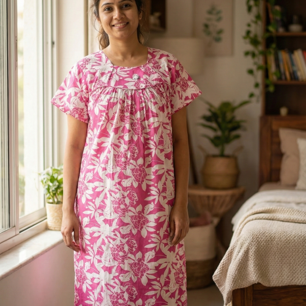 Comfortable Churidar Model Cotton Nighty – 55 Inches Long