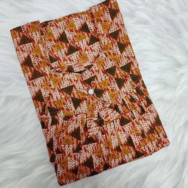 Front open Ajrak cotton nighty, 55 Inches Long – Red