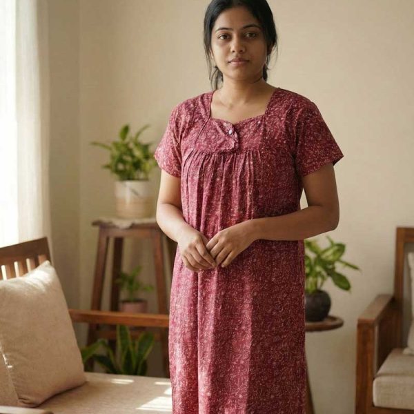Traditional cotton nighty, 55 Inches Length – Brown colour