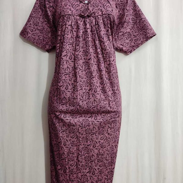 Traditional cotton nighty, 55 Inches Long – Grapes Purple