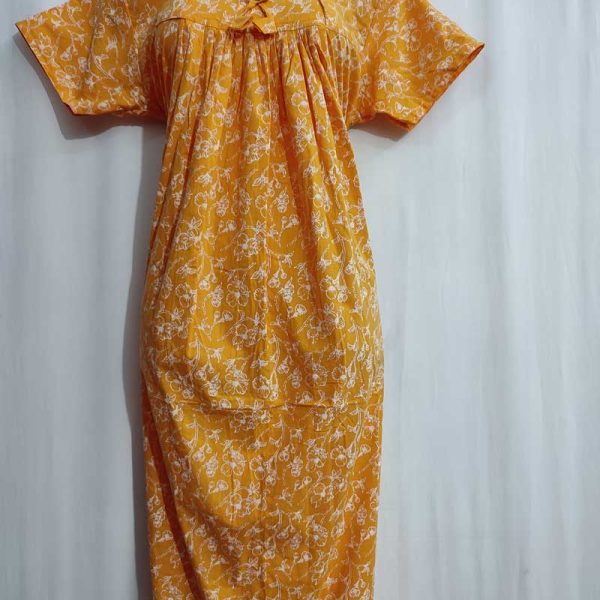 Traditional cotton nighty, 55 Inches Long – Yellow