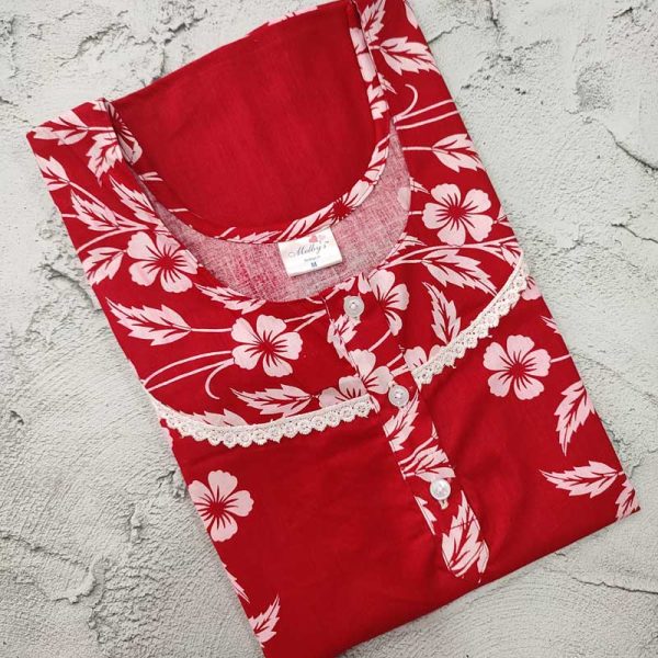 Comfortable Churidar Model Cotton Nighty – 55 Inches Long – Red