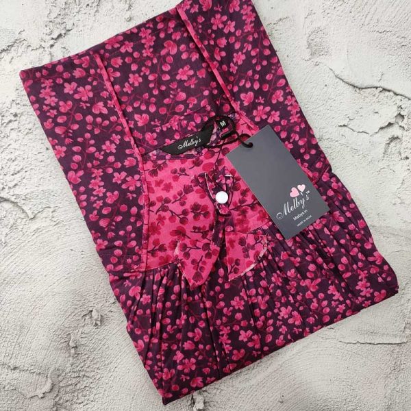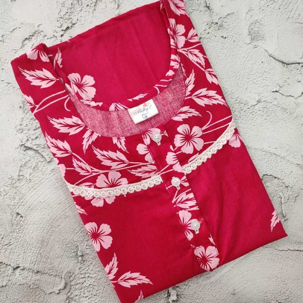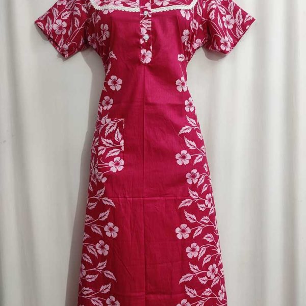 Traditional cotton nighty, 55 Inches Long – Magenta