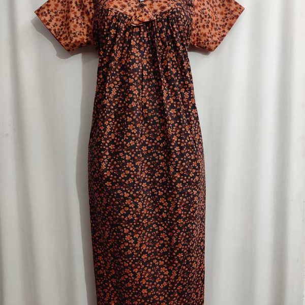 Traditional cotton nighty, 55 Inches Long – Brown