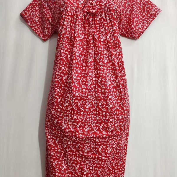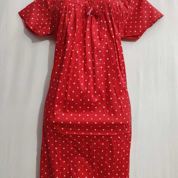 Front Open Cotton Nighty With Buttons, 55 Inches Long – Maroon