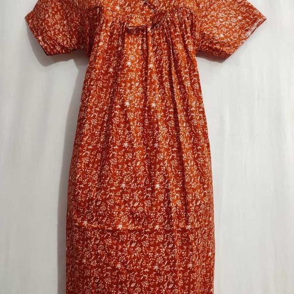 Traditional cotton nighty, 55 Inches Long – Dark Orange