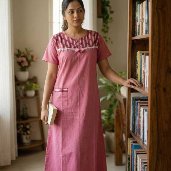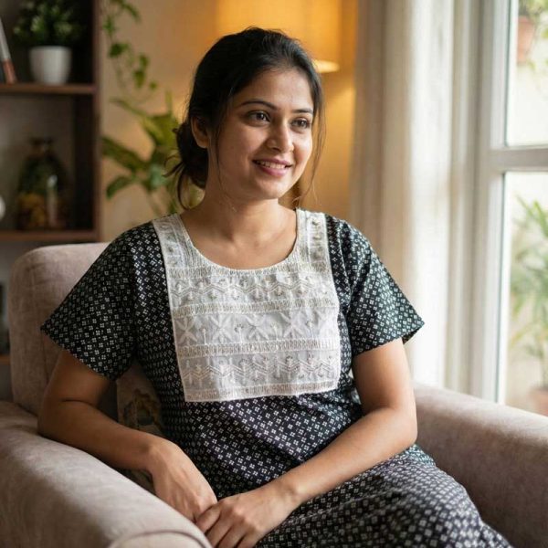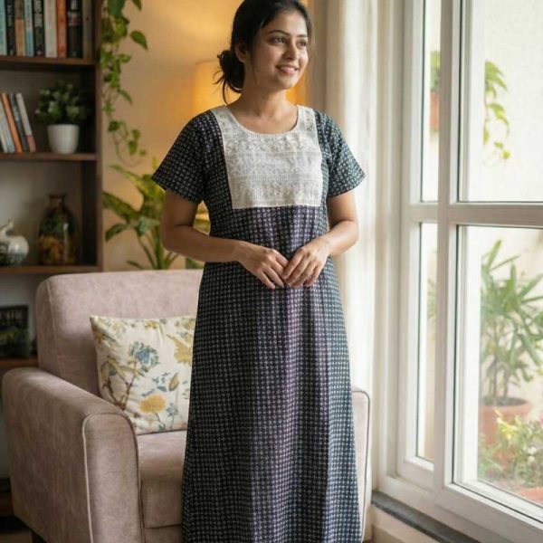 Original price was: ₹699.₹549Current price is: ₹549.Discover the perfect blend of traditional elegance and modern comfort with our collection of Churidar model nighties. Crafted from high-quality cotton, these nighties offer supreme comfort and breathability for a restful night’s sleep. With a wide variety of styles and designs available, you can find the perfect Churidar model nighty to suit your preferences. Browse our selection online and order now to experience the ultimate in nighttime luxury!