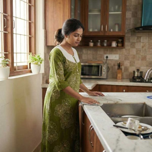 Comfortable Churidar Model Cotton Nighty, 55 Inches Long, 3/4th Sleeves – Green