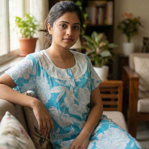 Original price was: ₹599.₹579Current price is: ₹579.Discover the perfect blend of traditional elegance and modern comfort with our collection of Churidar model nighties. Crafted from high-quality cotton, these nighties offer supreme comfort and breathability for a restful night’s sleep. With a wide variety of styles and designs available, you can find the perfect Churidar model nighty to suit your preferences. Browse our selection online and order now to experience the ultimate in nighttime luxury!