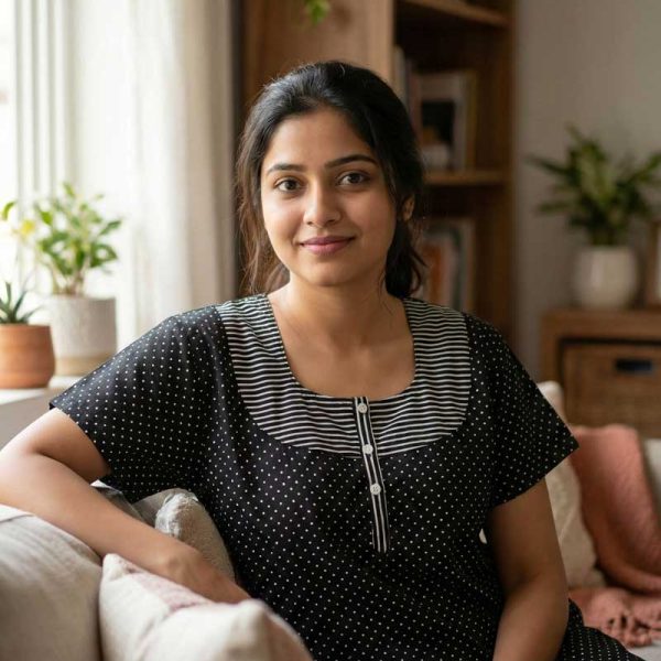 Original price was: ₹620.₹520Current price is: ₹520.Discover the perfect blend of traditional elegance and modern comfort with our collection of Churidar model nighties. Crafted from high-quality cotton, these nighties offer supreme comfort and breathability for a restful night’s sleep. With a wide variety of styles and designs available, you can find the perfect Churidar model nighty to suit your preferences. Browse our selection online and order now to experience the ultimate in nighttime luxury!