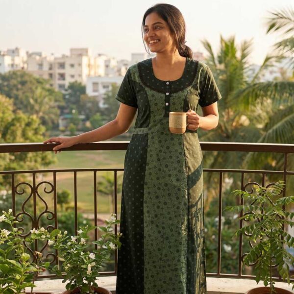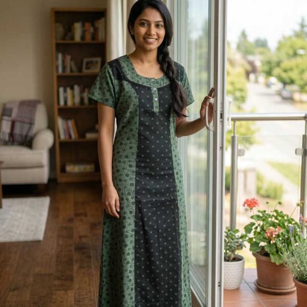 Comfortable Churidar Model Cotton Nighty, 55 Inches Long – Green