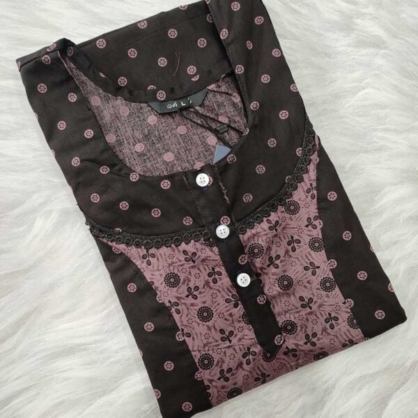 Comfortable Churidar Model Cotton Nighty, 55 Inches Long – Black + Light Purple