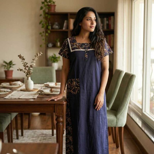 Comfortable Churidar Model Cotton Nighty, 55 Inches Long – Dark Blue