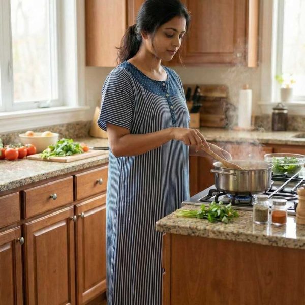 Comfortable Churidar Model Cotton Nighty with Peter-Pan Collar – 55 Inches Long