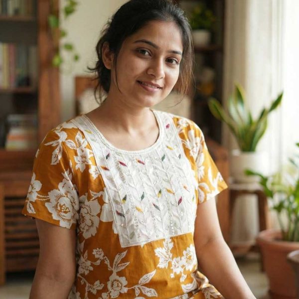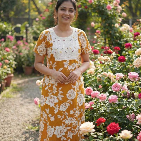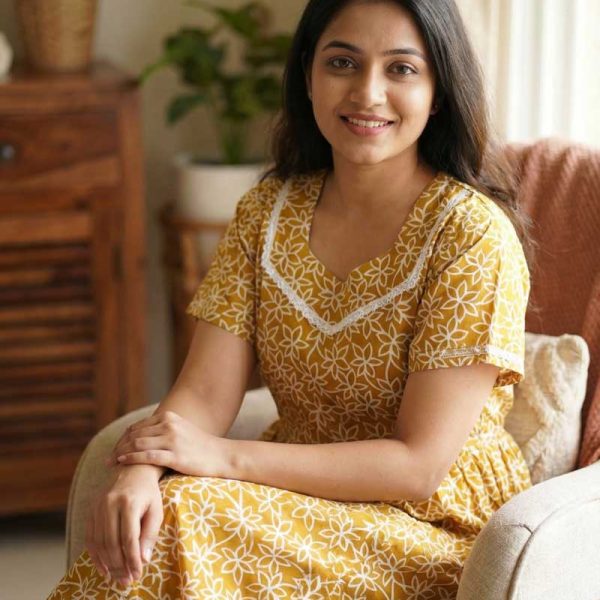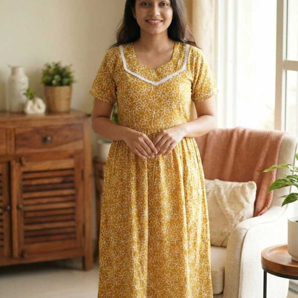Comfortable Frock Model Cotton Nighty – 55 Inches Long – Golden Yellow