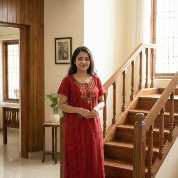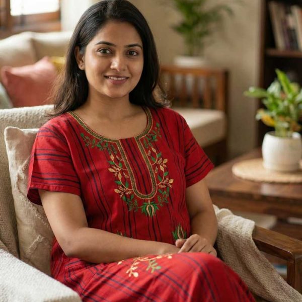 Comfortable Churidar Model Cotton Nighty -55 Inches Long – Red Embroidery