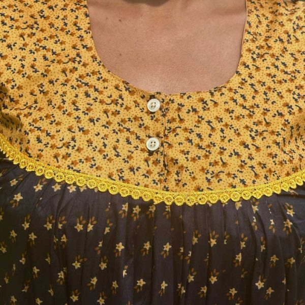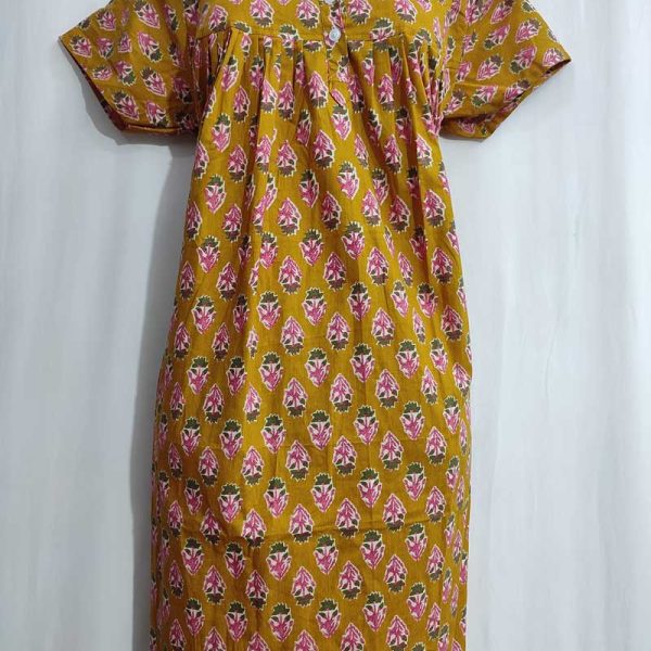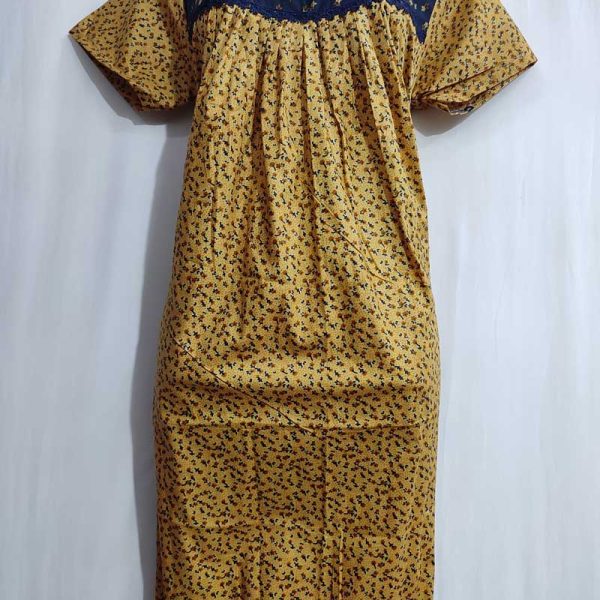 Premium Quality Cambric Cotton Nighty With Buttons -55 Inches Long – Yellow