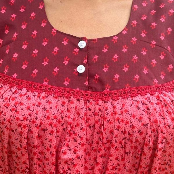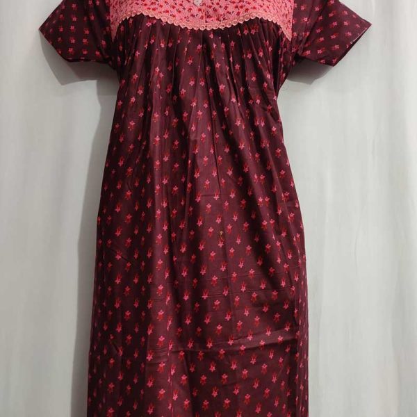 Front Open Cotton Nighty With Buttons, 55 Inches Long – Maroon