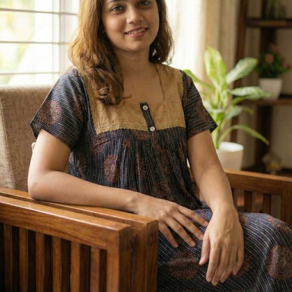 Melbys front open nighty for women is handmade. We provide double stitching or overlock for nighty. Front open nighty can be also used as feeding nighty for women.