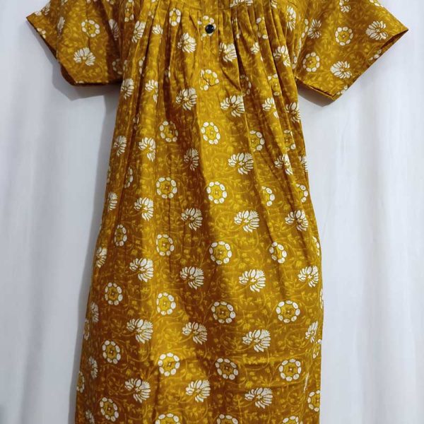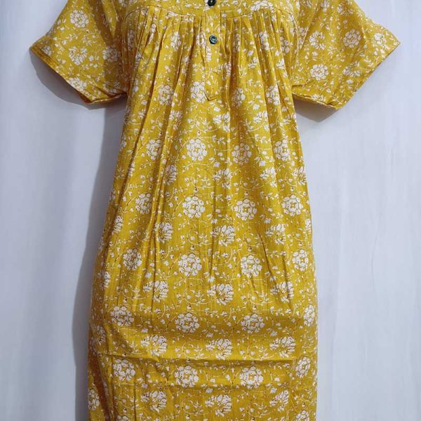 Comfortable Front Open Cotton Nighty With Buttons- 57 inches long – Yellow