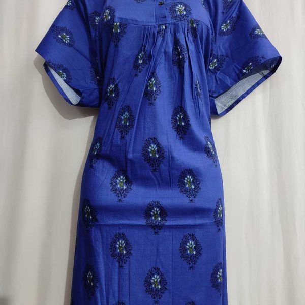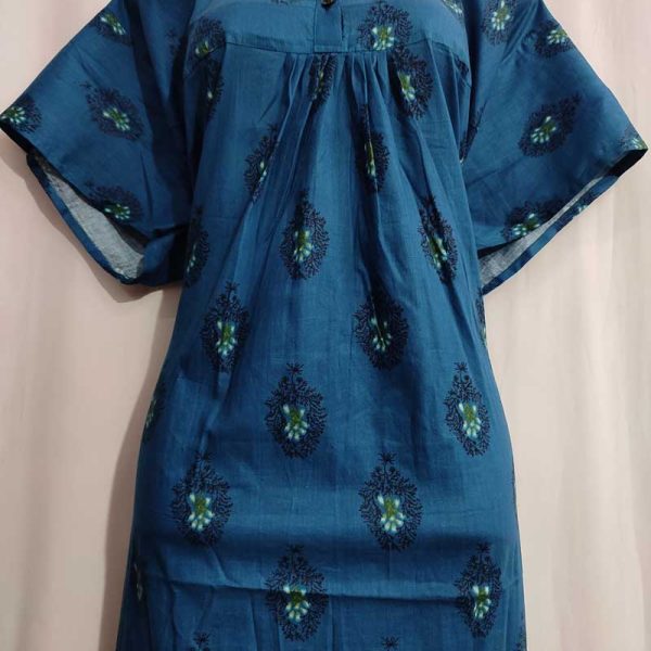Comfortable Front Open Cotton Nighty With Buttons- 57 inches long – Blue