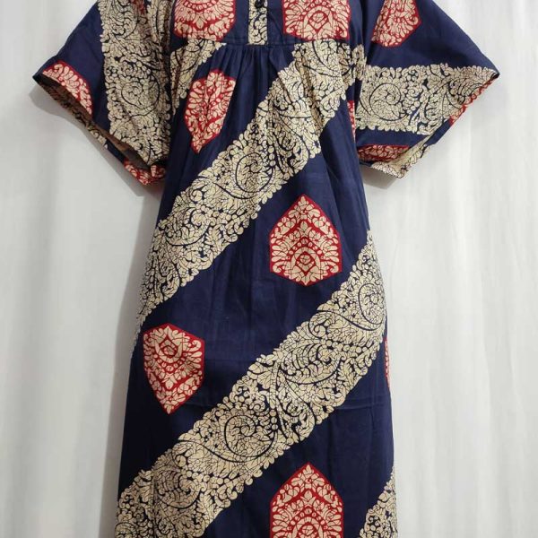 Comfortable Front Open Cotton Nighty With Buttons- 57 inches long – Dark Blue