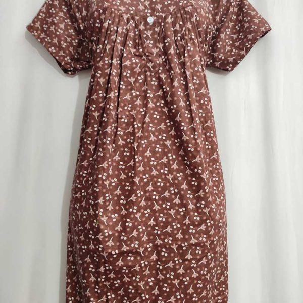 Front Open Cotton Nighty With Buttons, 55 Inches Long – Brown