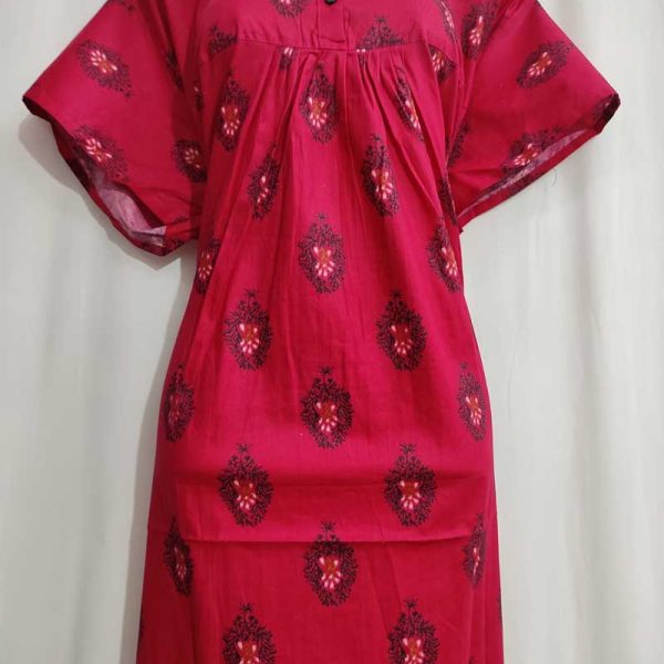 Comfortable Front Open Cotton Nighty With Buttons- 57 inches long – Magenta