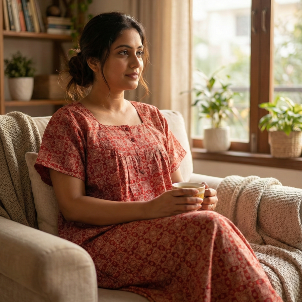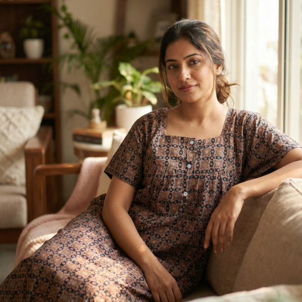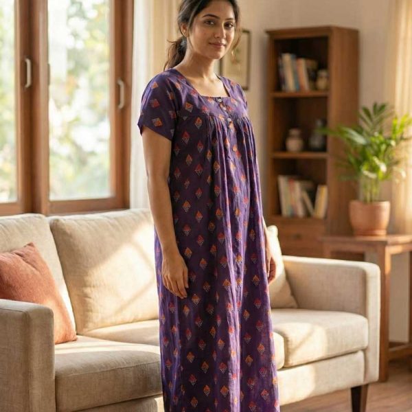 Melbys offer pure cotton front open nighty for women.We have both front zip and front button nighties. All our nighty are stitched for maximum comfort.