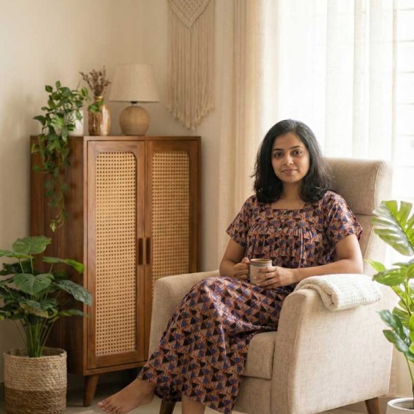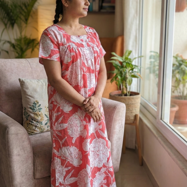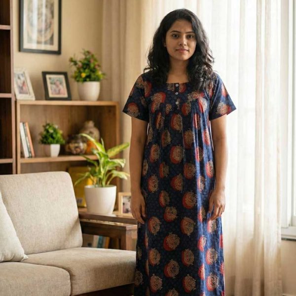 Melbys front open nighty for women is handmade. We provide double stitching or overlock for nighty. Front open nighty can be also used as feeding nighty for women.