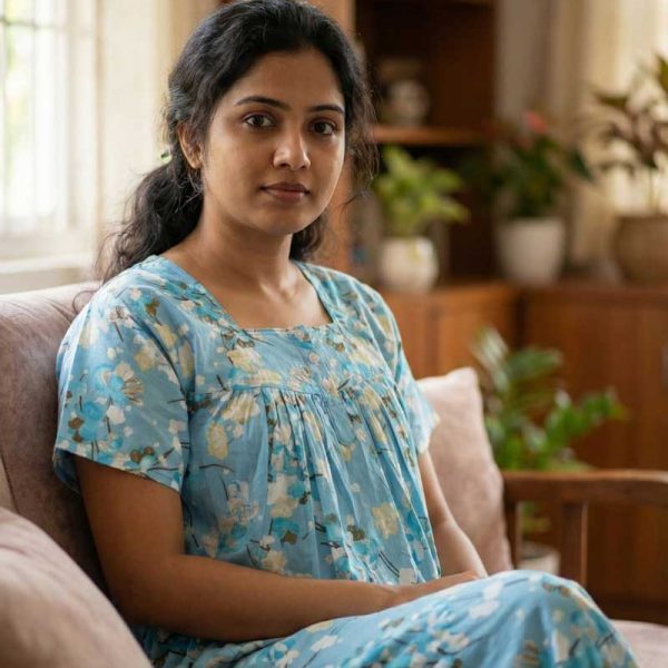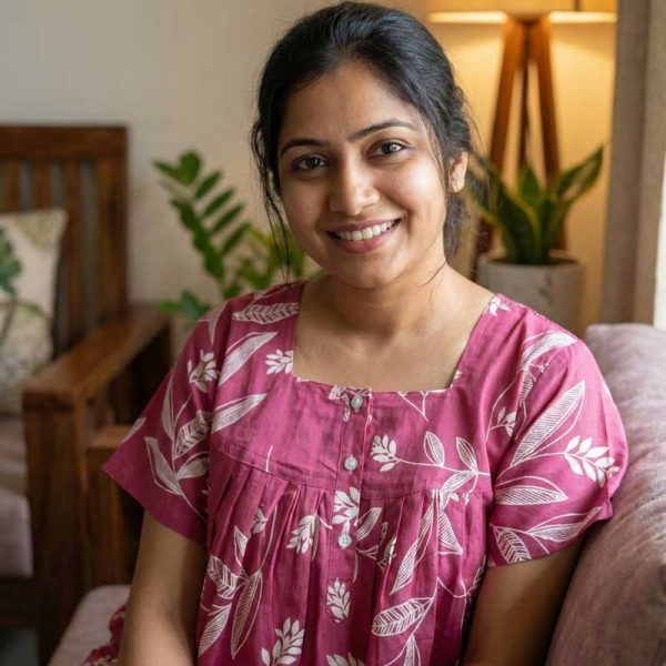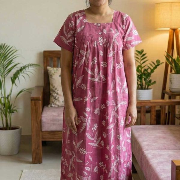 Comfortable Front Open Cotton Nighty With Buttons – 55 inches long – Rose