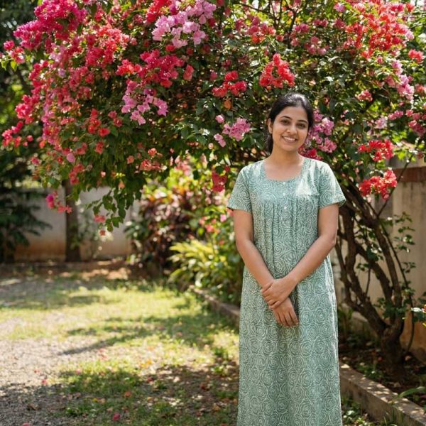 Comfortable Front Open Cotton Nighty With Buttons – 55 inches long – Green