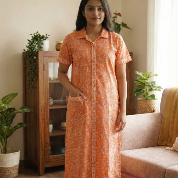 Full Open Maternity Gown With Buttons -55 Inches Long – Orange