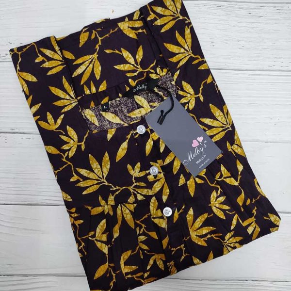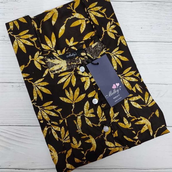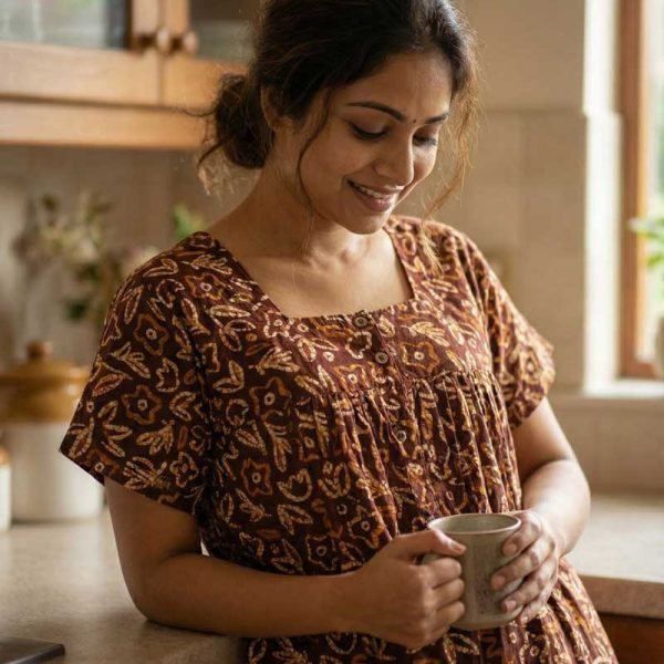 Front Open Cotton Nighty With Buttons, 55 Inches Long – Brown