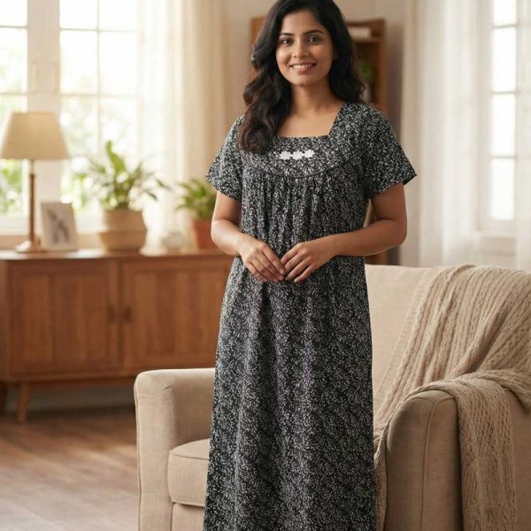 Traditional cotton nighty, 55 Inches Length – Black